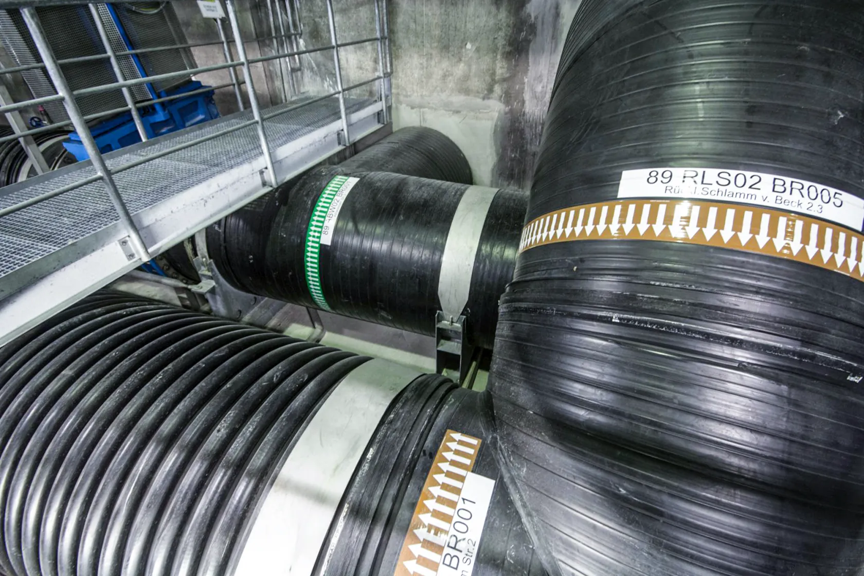 Am Boden des Beckens bewegen sich Räumer, die den abgesetzten Belebtschlamm in Trichter schieben. Von dort wird ein Teil des Schlamms über spezielle Pumpen zurück in die Belebungsbecken und in die Phosphorelimination geleitet. So bleiben ausreichend Mikroorganismen für die weitere Reinigung im Kreislauf. Der überschüssige Schlamm – der sogenannte Überschussschlamm – wird aus dem System entfernt, in der Schlammbehandlung weiterverarbeitet und anschließend thermisch verwertet.